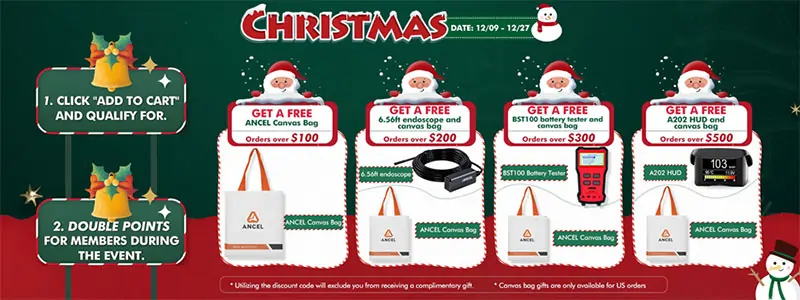 This holiday season, ANCEL is the merry beacon for all car enthusiasts and professionals. With our sack of gifts ready to be placed under your tree, you can give your beloved vehicle the gift of health and longevity. Our tiered giveaway ensures that generosity is the engine of the season – each purchase not only upgrades your automotive toolkit but also brings with it a sleigh-load of festive cheer in the form of ANCEL goodies.