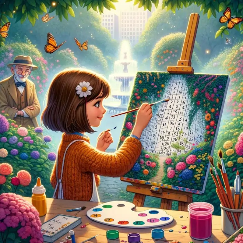 As the sunlight dimmed and the evening sun dipped low, bathing the garden in a warm, golden light, Emma added the last strokes to her part of the artwork. The painting now beautifully portrayed the vibrant and lively essence of the secret garden, alive with color and energy. Mr. Bloom expressed his gratitude to Emma for her artistic input and gifted her a compact Paint by Numbers kit, a memento to keep the memory of the garden alive. “With this, the magic of this place will always be with you,” he remarked, his eyes sparkling with a playful yet gentle gleam.